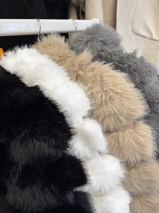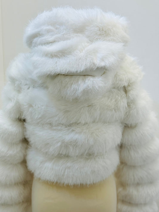 ANGEL- HOODED FAUX FUR JACKET- WHITE