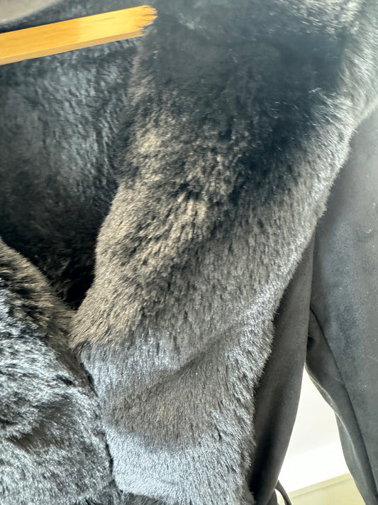 ANGEL-HOODED FAUX FUR JACKET- BLACK