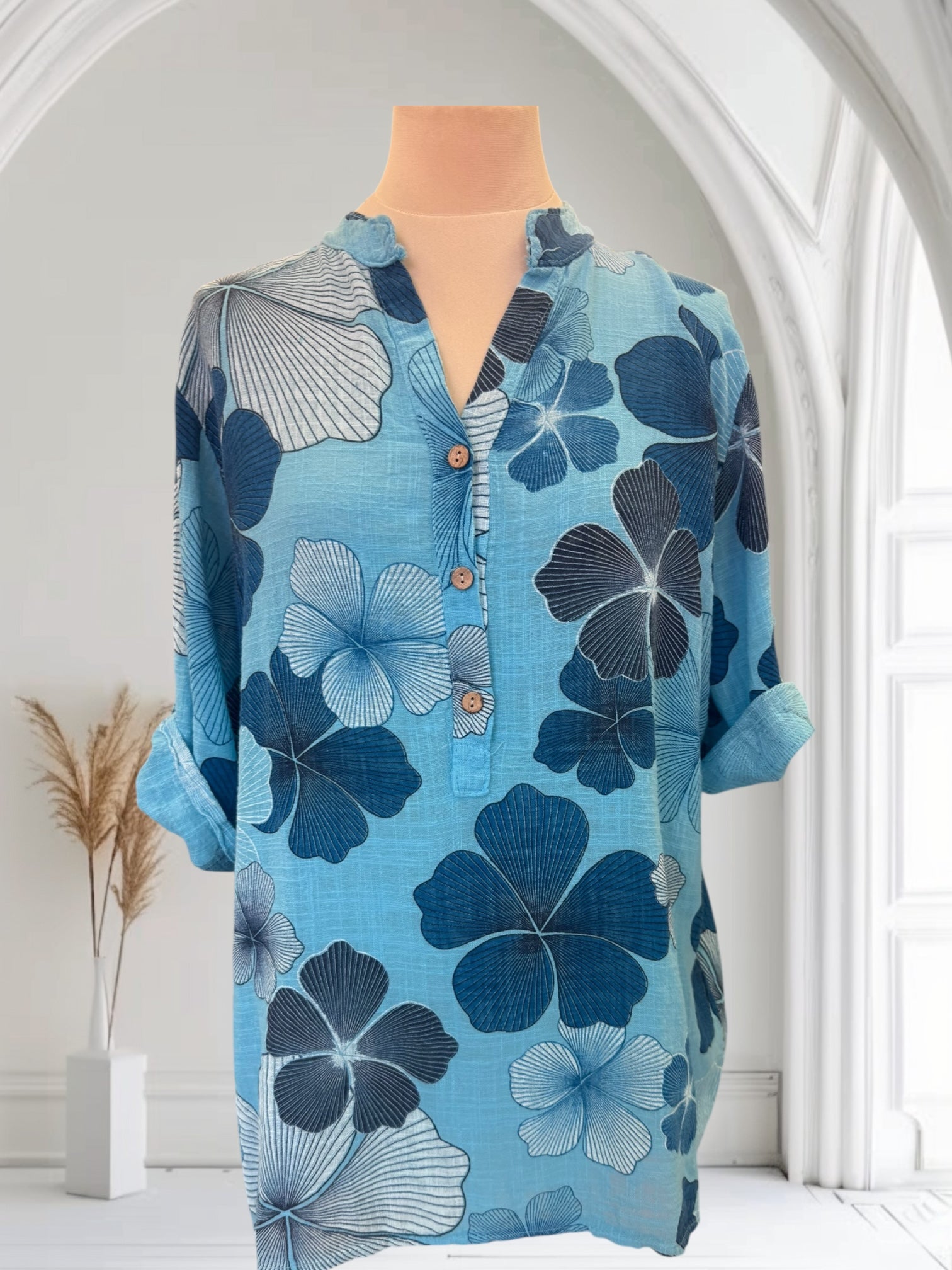 “The elegant and flowy April Top – 100% pure cotton with three chic front buttons 🌸 Only one left! Snag it now in our sale for just £14 before it’s gone!”