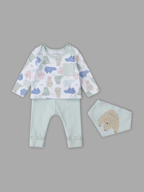 Introducing the Baby Mint Bear 3PC Lounge Set, designed for your baby's ultimate comfort. This set includes a soft mint-colored onesie, matching pants, and a cozy bear-shaped beanie. Made with premium materials, this set provides warmth and style, perfect for any lounging occasion. Plus, its adorable bear design adds a touch of cuteness to your baby's wardrobe.
