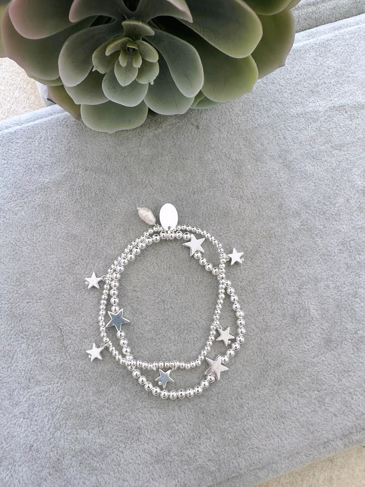 Add a touch of elegance to your outfit with our copper bracelet! This beaded design features charming stars and a delicate pearl, weighing 22.8 g and measuring 18.5 cm in size. The copper material adds durability and style while the design adds a unique and beautiful touch.