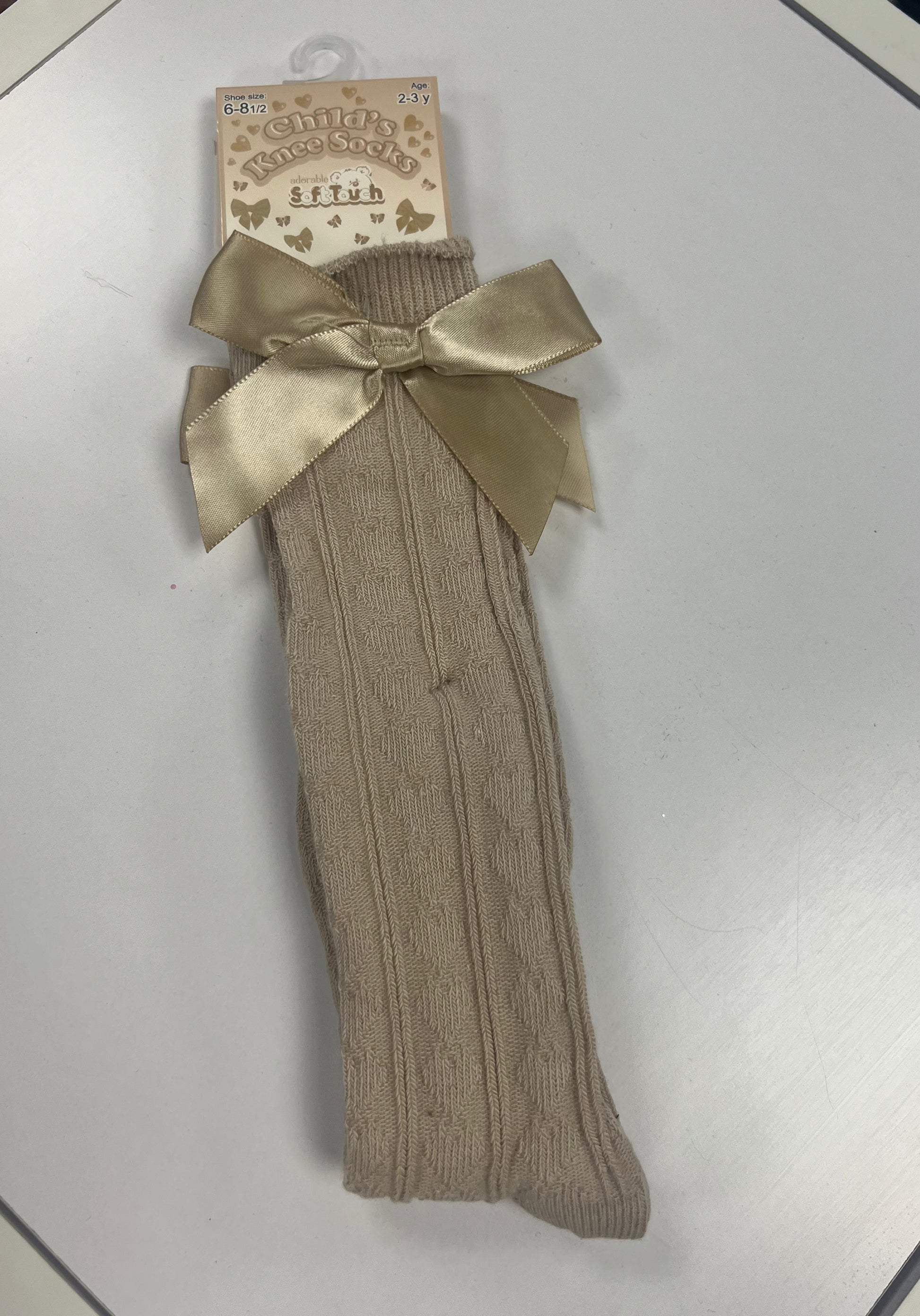 Our Beige Knee-length Bow Socks are perfect for little girls aged 3-6 years. With a professional finish, these socks feature a glossy fabric that ensures durability and comfort. These socks also feature an eye-catching bow design that adds a touch of sparkle and style.