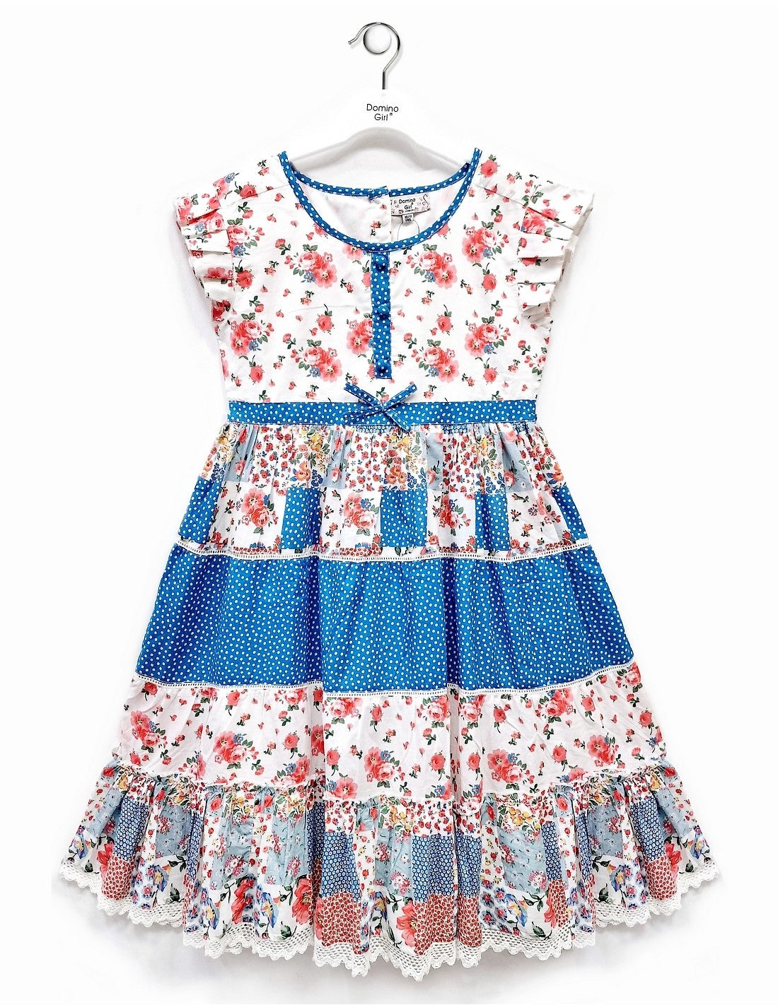 Floral & Patchwork Print Girls Tiered Dress