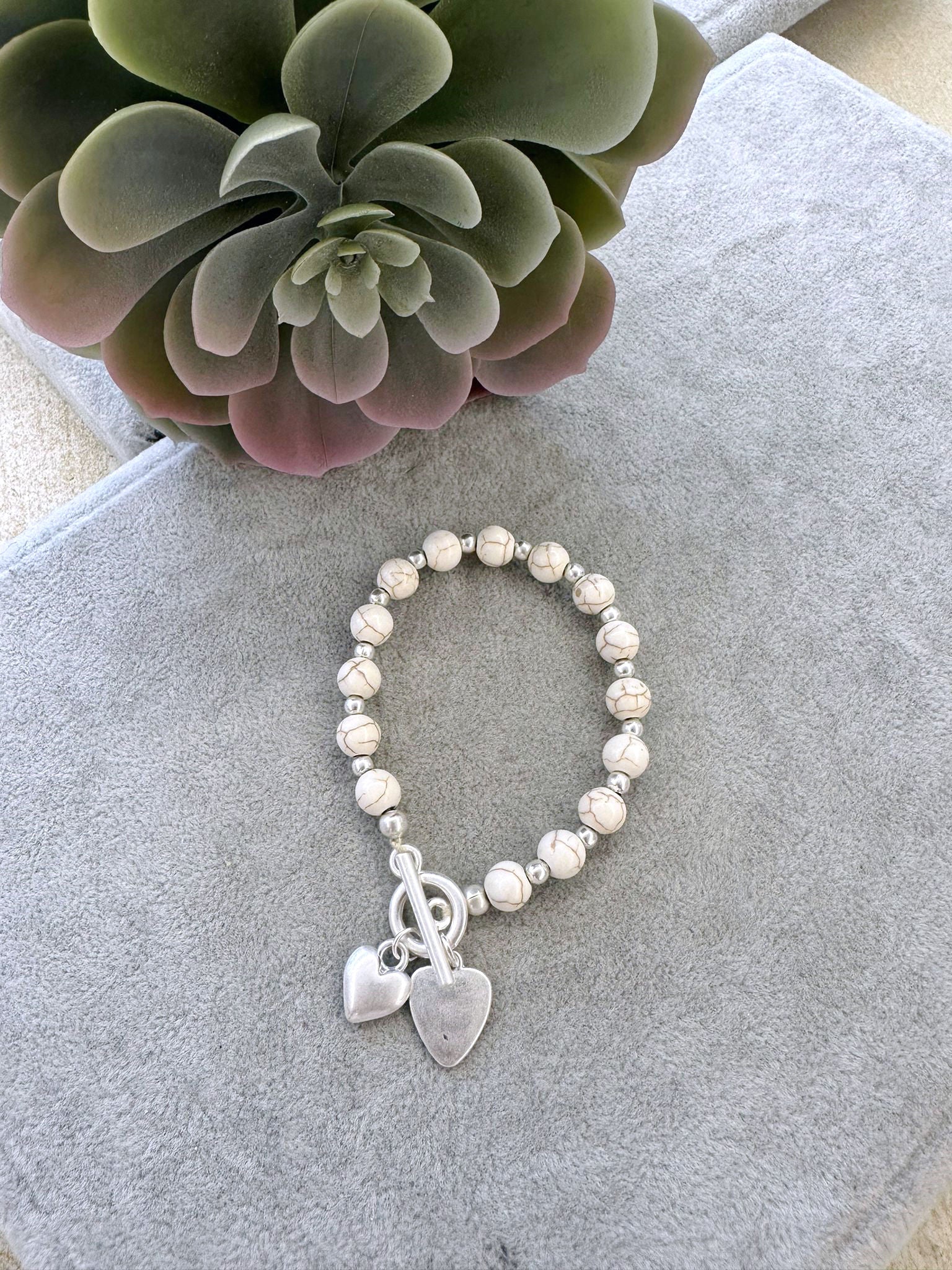 Expertly crafted from nickel-free alloy and adorned with a beautiful turquoise charm, this 19.5cm beaded bracelet is both stylish and safe for sensitive skin. With a lightweight of 15.9g, it's the perfect accessory for daily wear. Elevate your style and add a touch of elegance to any outfit with this heart charm bracelet.