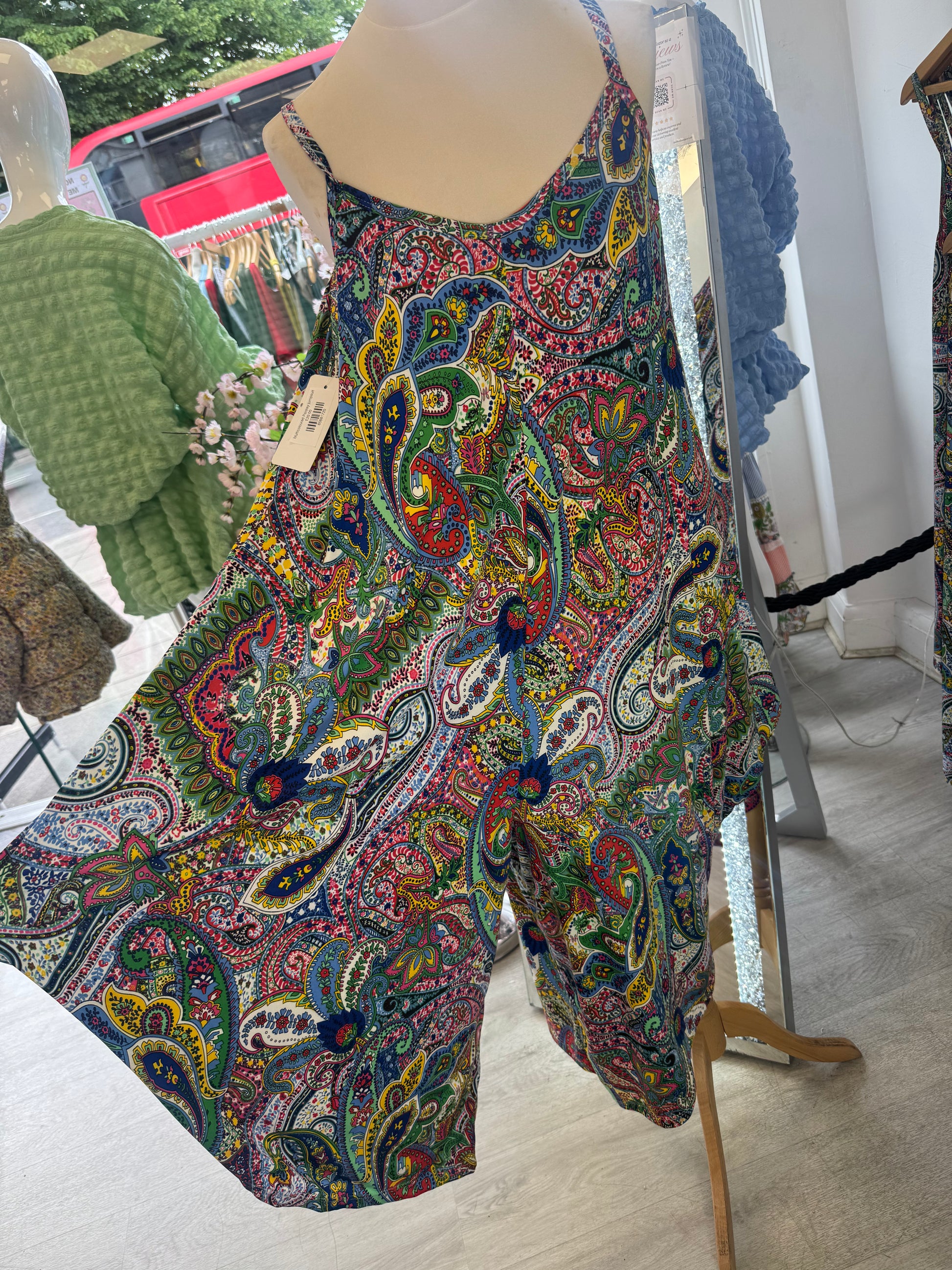 This multicoloured paisley jumpsuit is a stylish addition to any wardrobe. Its eye-catching design and comfortable fit make it perfect for any occasion. Made with high-quality materials, it offers both style and durability. With its vibrant colours and unique pattern, this jumpsuit is sure to make a statement wherever you go.